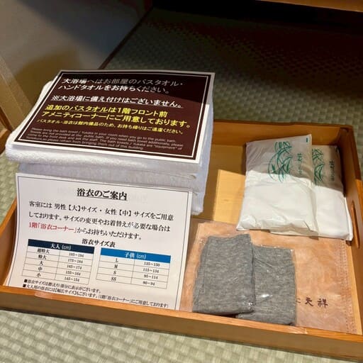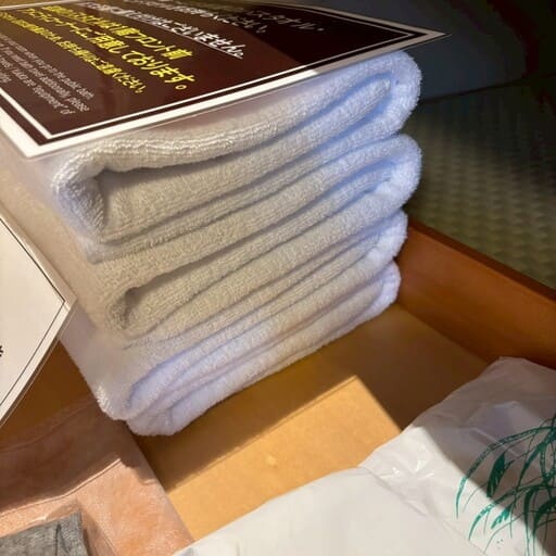ゆのくに天祥は大浴場にタオルが置いてありません。部屋のタオルを持っていきます。