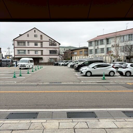 ゆのくに天祥の駐車場は道路を挟んで向かい側にあるため、僕らは先に車を駐めました。