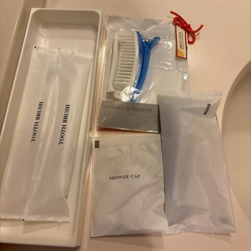 アメニティも一通り揃っています。ヘア留めがあるのは珍しい気がします。